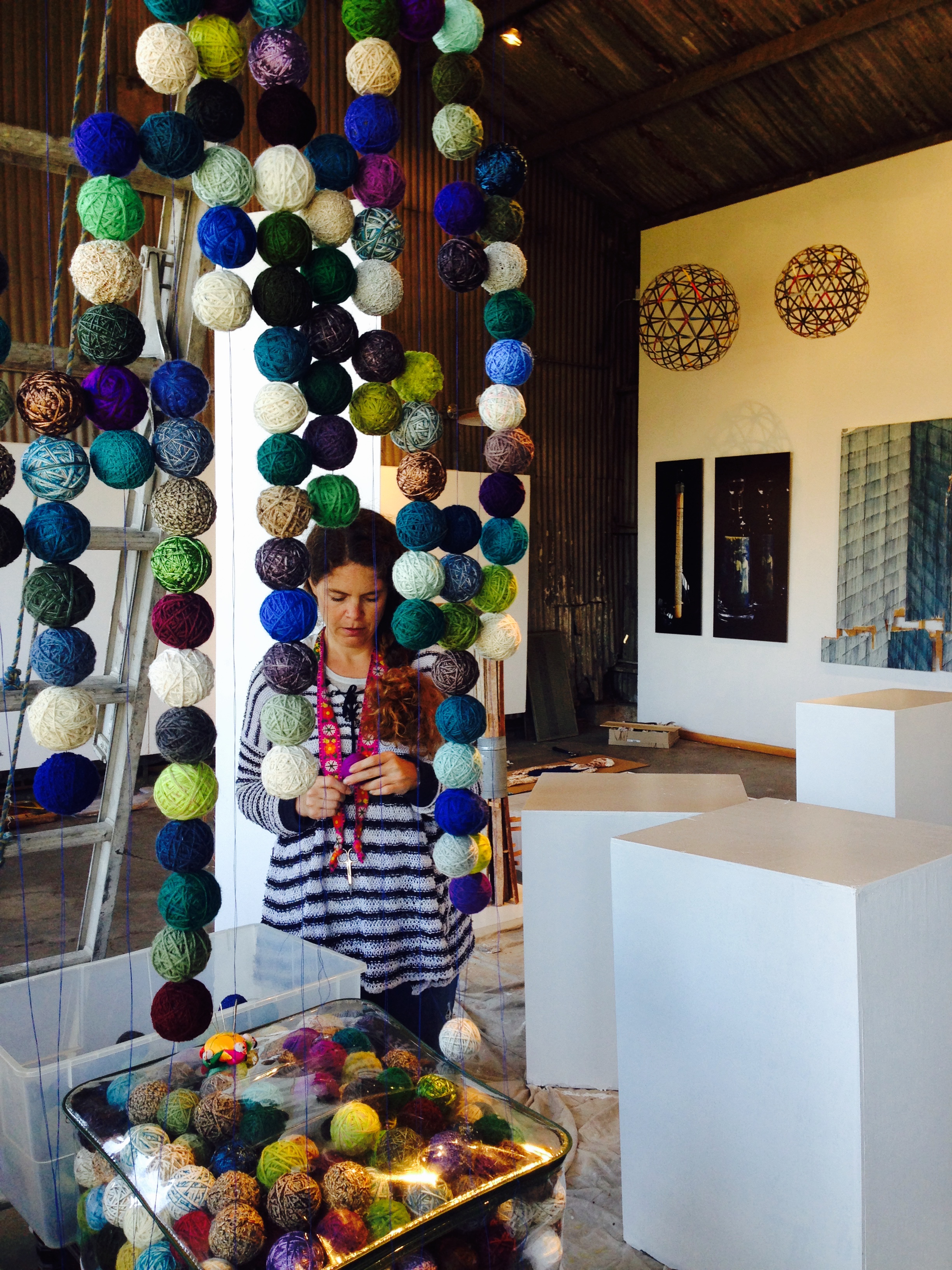 She began wrapping discarded materials found at reuse centers and also from the street. Using an age old Japanese wrapping technique called Temari, she soon developed a pattern that was unique to her alone. Anything from lint, dog hair and found plastic was wrapped with bright and colorful fiber, transforming trash into treasure.