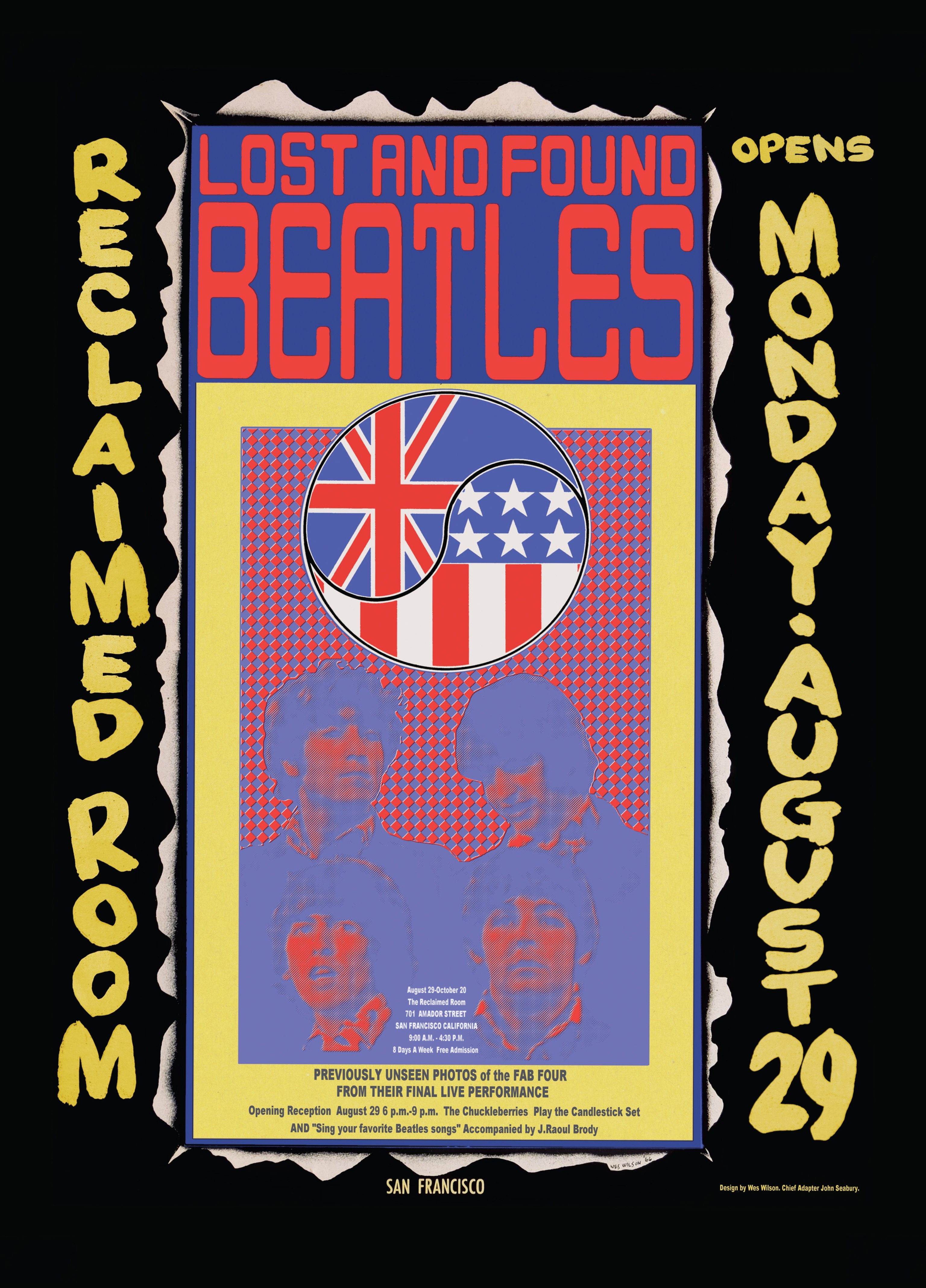 Dave Seabury is back in our room with photos from the Beatles last concert at Candlestick Park. 30 years ago he discovered a contact sheet of amazing images of the Beatles by an as yet unidentified photographer. The images have been digitized, restored and enlarged to commemorate the 50th anniversary of that last Beatles concert. The Opening Reception will also feature live music by The Chuckleberries and J. Raoul Brody on keyboard. The show will be up through October 20th 2016. Reclaimed Room is open 8 Days a week for this exhibit 9am-4:30pm, excluding major holidays. More details can be found in this article published by SF Gate/San Francisco Chronicle. Click onto the link below to read the article.