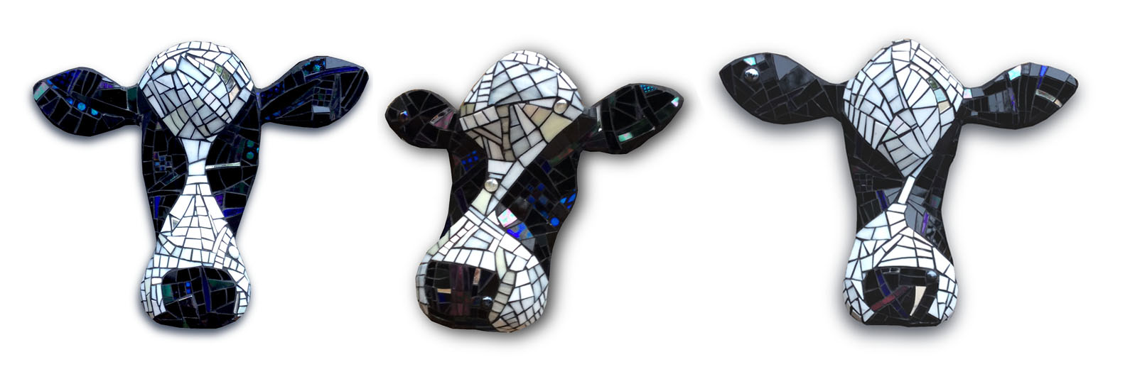 Kim Larson’s exquisite mosaic work honors organic form as well as delights the eye. Using stained glass, broken china, recycled glass & mirror, found objects, etc as tesserae, Kim works in a playful and unique style.