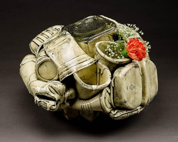 Heather Law’s artwork is a dramatic depiction of American material consumerism and the resulting waste it creates. The repurposing of personal detritus makes an ethical claim on the viewer, an invitation to reflect upon one’s own daily interactions with these common objects. The transformation of trash into slip-cast ceramic sculpture emphasizes the permanency of our growing landfills in an ever-increasing disposable nation.