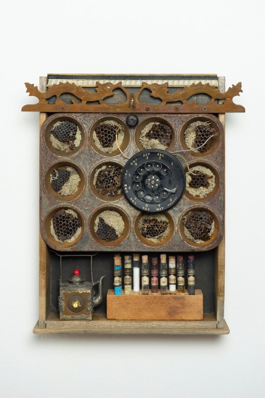 Dianne Hoffman creates dimensional vignettes of allegories by linking organic objects with industrial and figurative remnants and combines complementary muted color schemes to harmonize dissimilar media. She was born and raised in the suburbs of Southern California and moved north to become a resident of San Francisco in 1988. The City by the Bay, with its loving embrace of everything extraordinary and endless resource of possibilities, came to cultivate and nurture her creative impulses. She has been a full time assemblage artist of salvaged and repurposed components since 2010 with work found in collections worldwide.