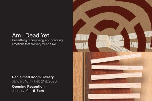 San Francisco artists Robin Dick and Sandoval explore and celebrate life, love, and loss through mixed media using discarded and found artifacts, reclaimed wood, paper, string, photographs, plastic, metal, and objects from nature. Am I Dead opens Friday, January 10th with refreshments from 5-7pm and will continue to be on view through Feb 21st, 2020.
