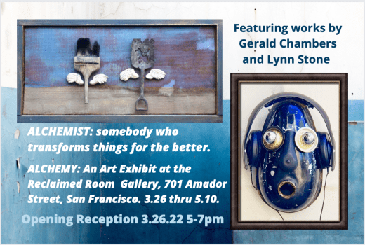 Reclaimed Room Gallery returns with a new show Saturday, March 26th, featuring Lynn Stone and Gerald Chambers. The Opening Reception is to be held at 5pm 3\26\22 with refreshments on hand, and musical accompaniment by Don Prell with his stand up bass, made from recycled parts. The show will be on view through May 10th, 2022.