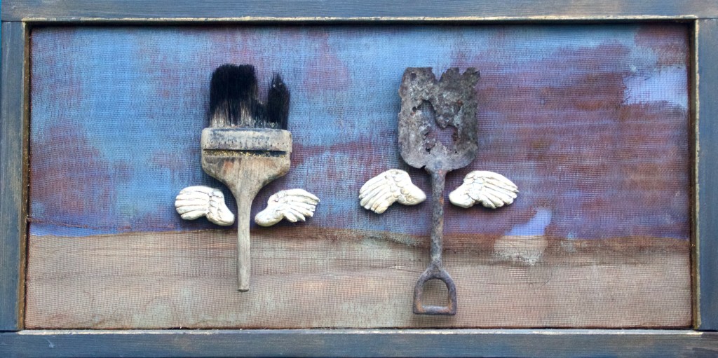The Coronavirus provoked me. Stuck at home, worried about the future, and forced to find something to focus my anxious mind, I turned to found object art. I had never worked in this medium before, but the pandemic forced us all to do things we never did before. I set out to sample items that I could make rhyme.