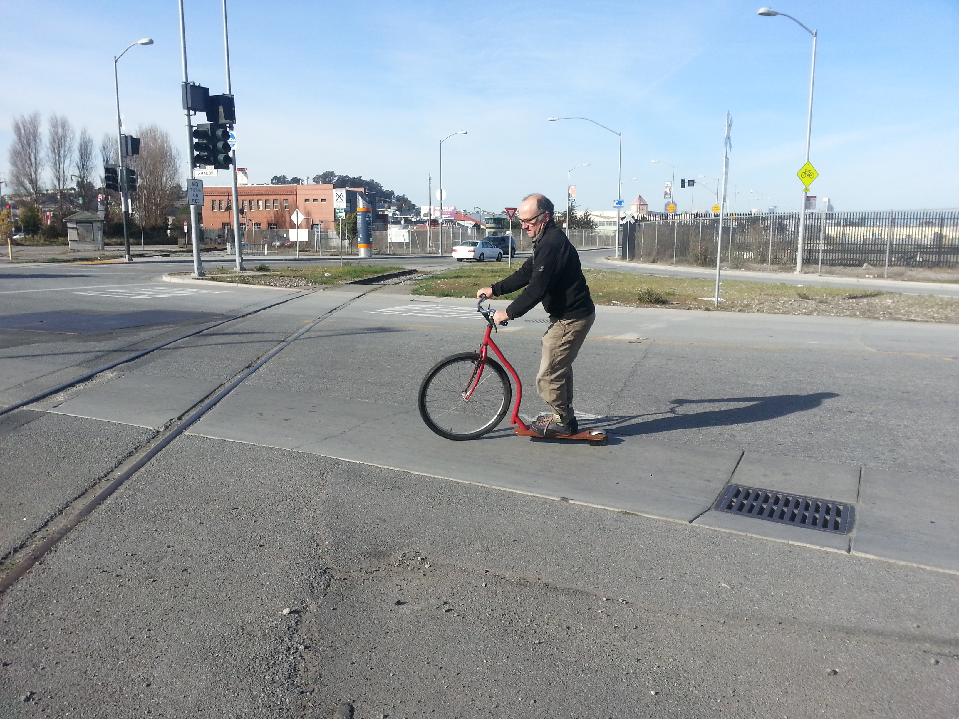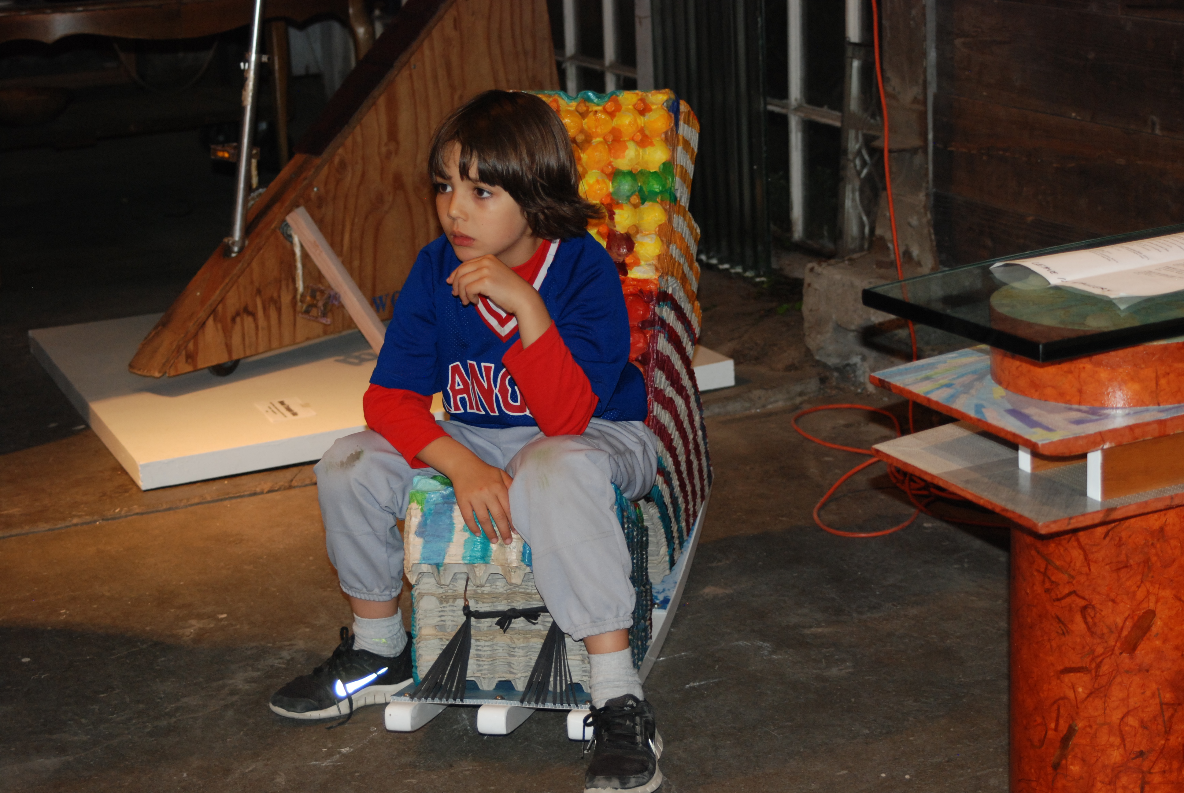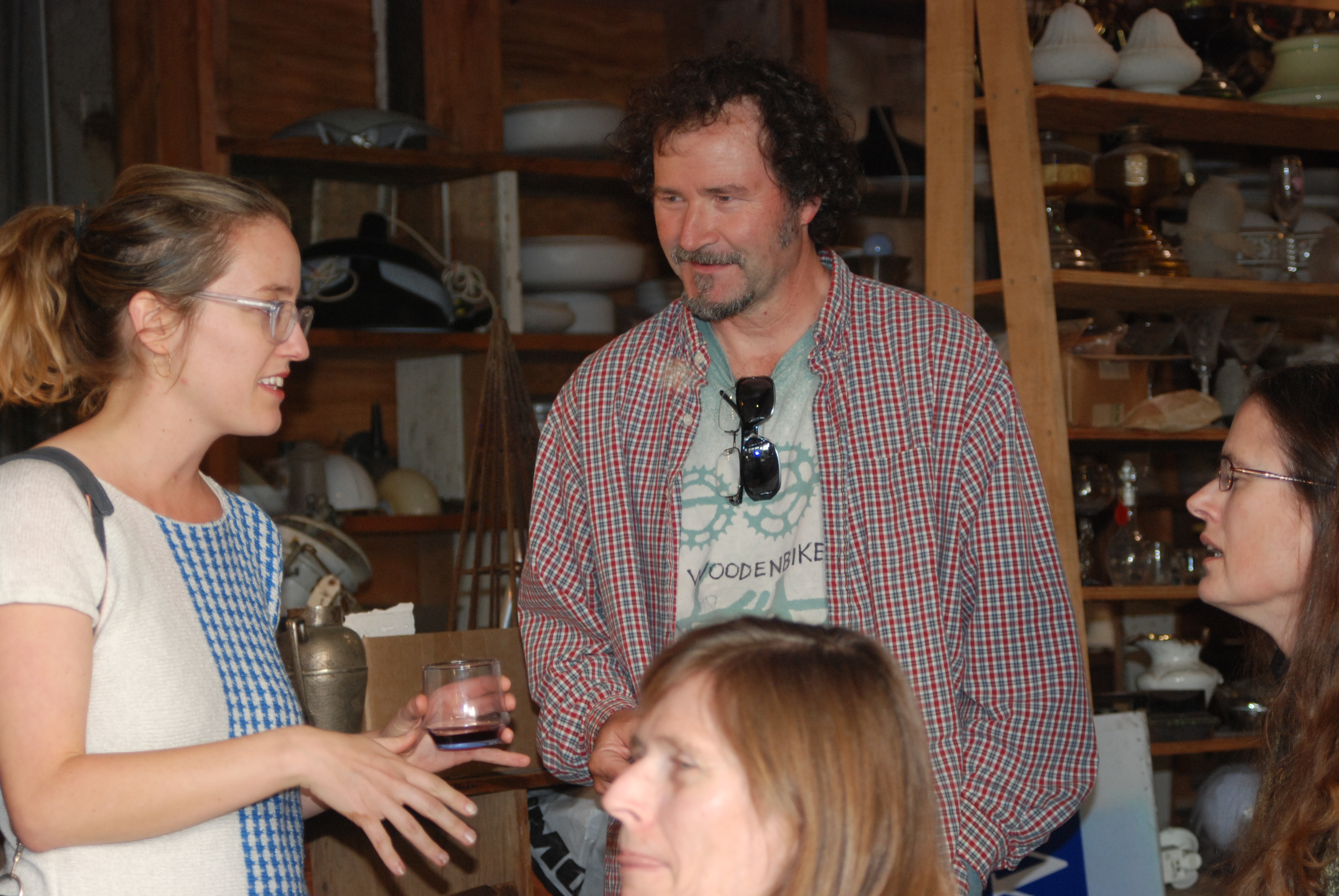 Check Out Beneath The Surface artists testing the work of featured artist Tom Kabat at a recent planning meeting! Kabat fashions interesting and intuitive bicycle sculptures from reclaimed odds and ends including skis, scooters and even a pencil bike that actually writes!! You can see more of his work at http://www.woodenbikes.com