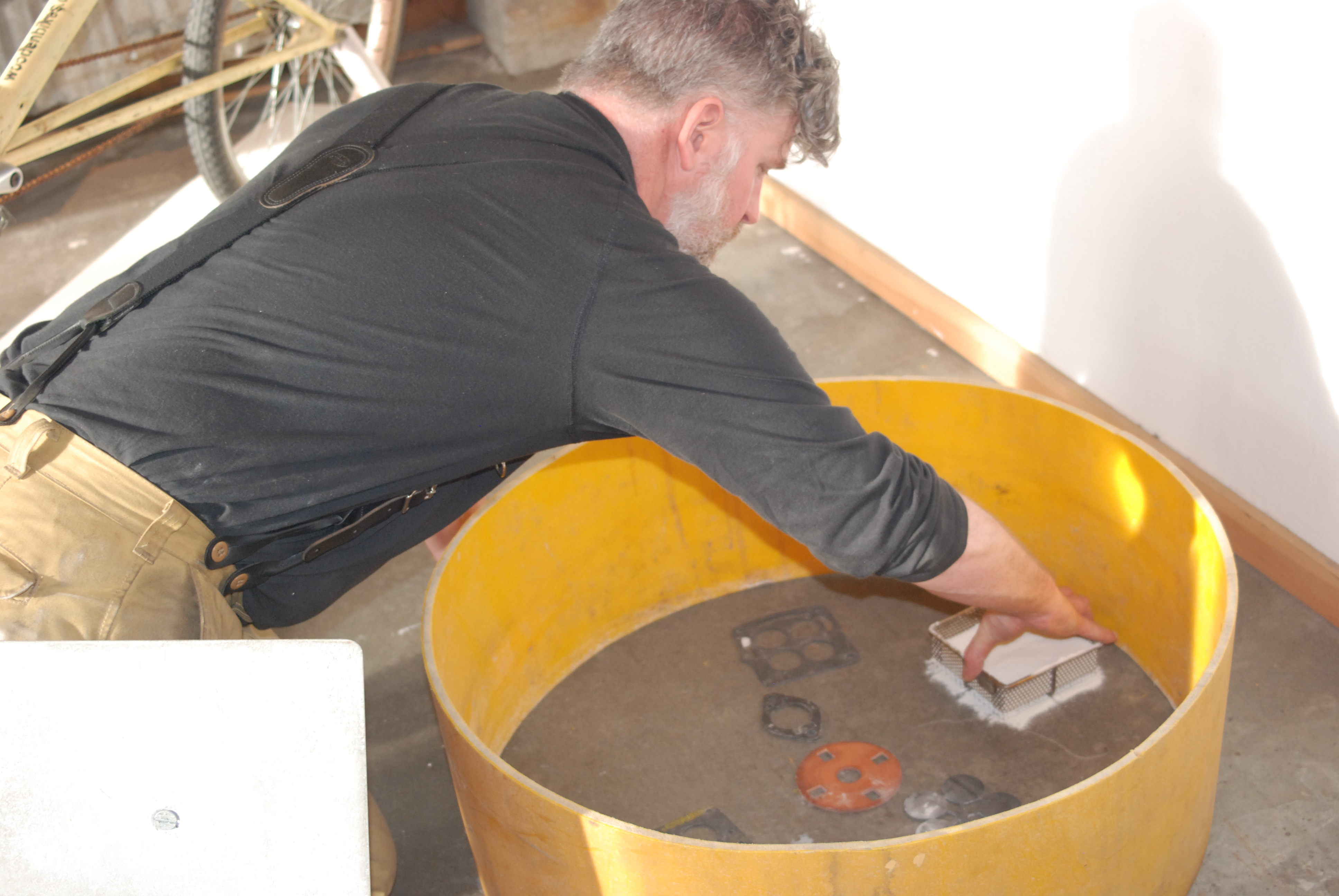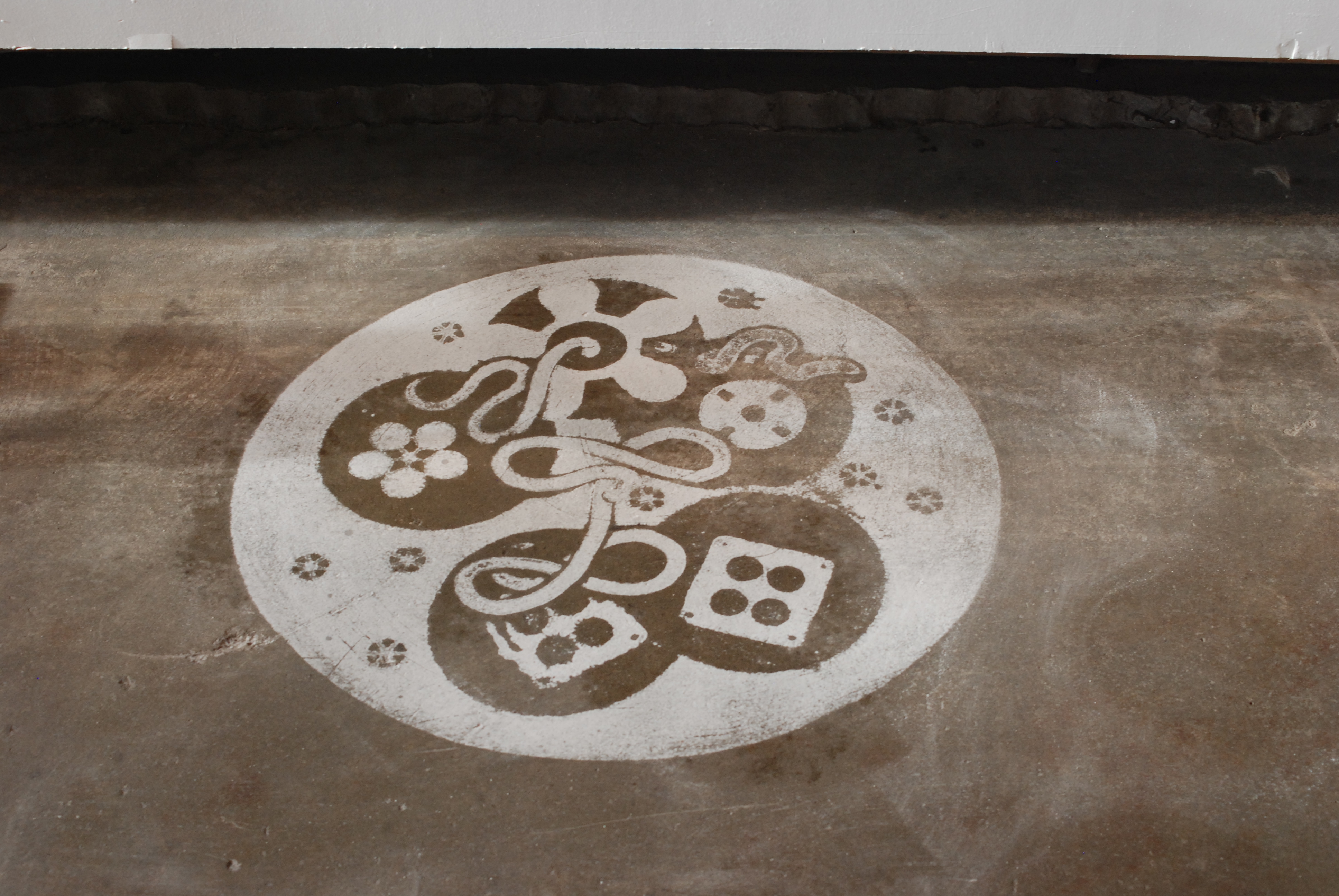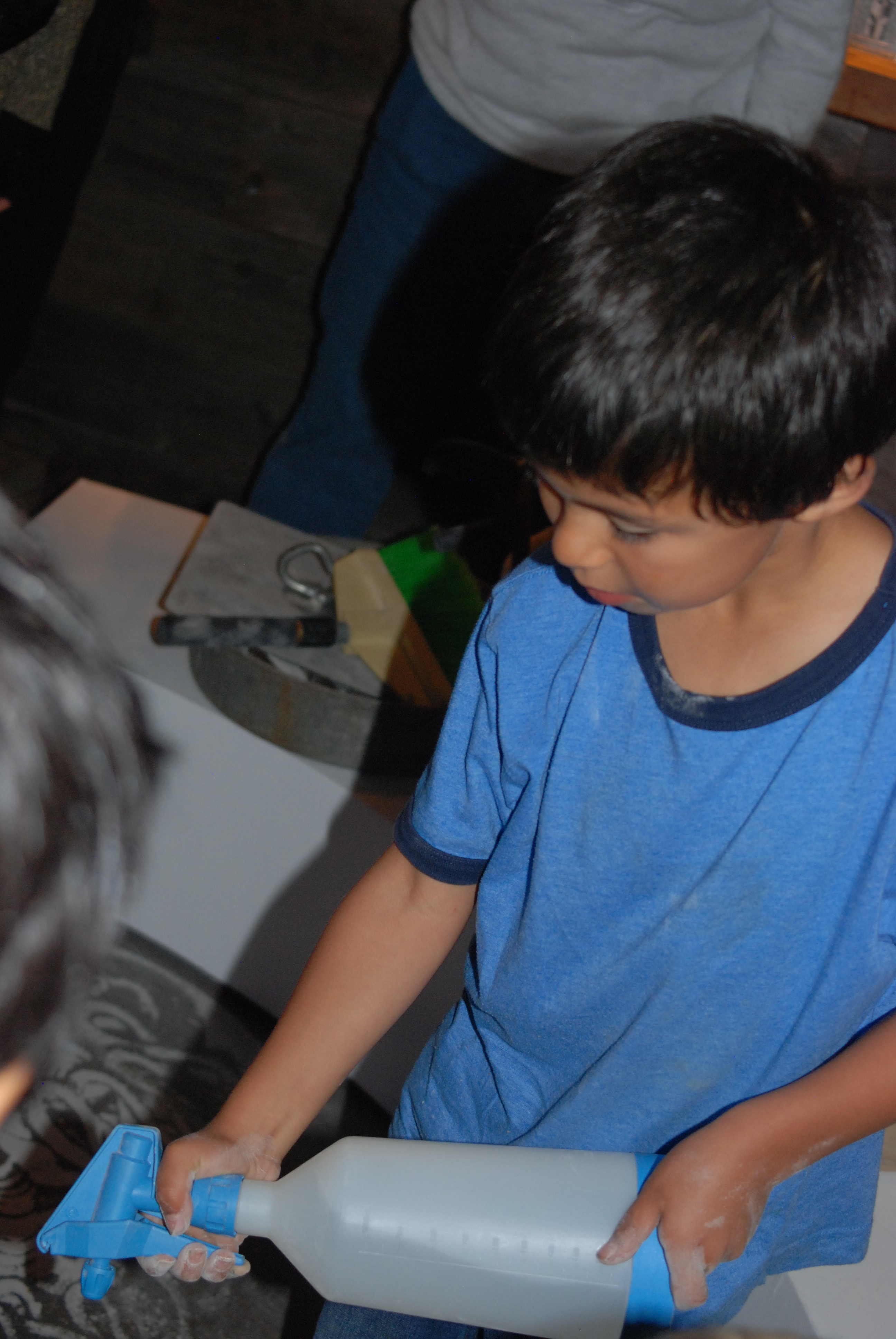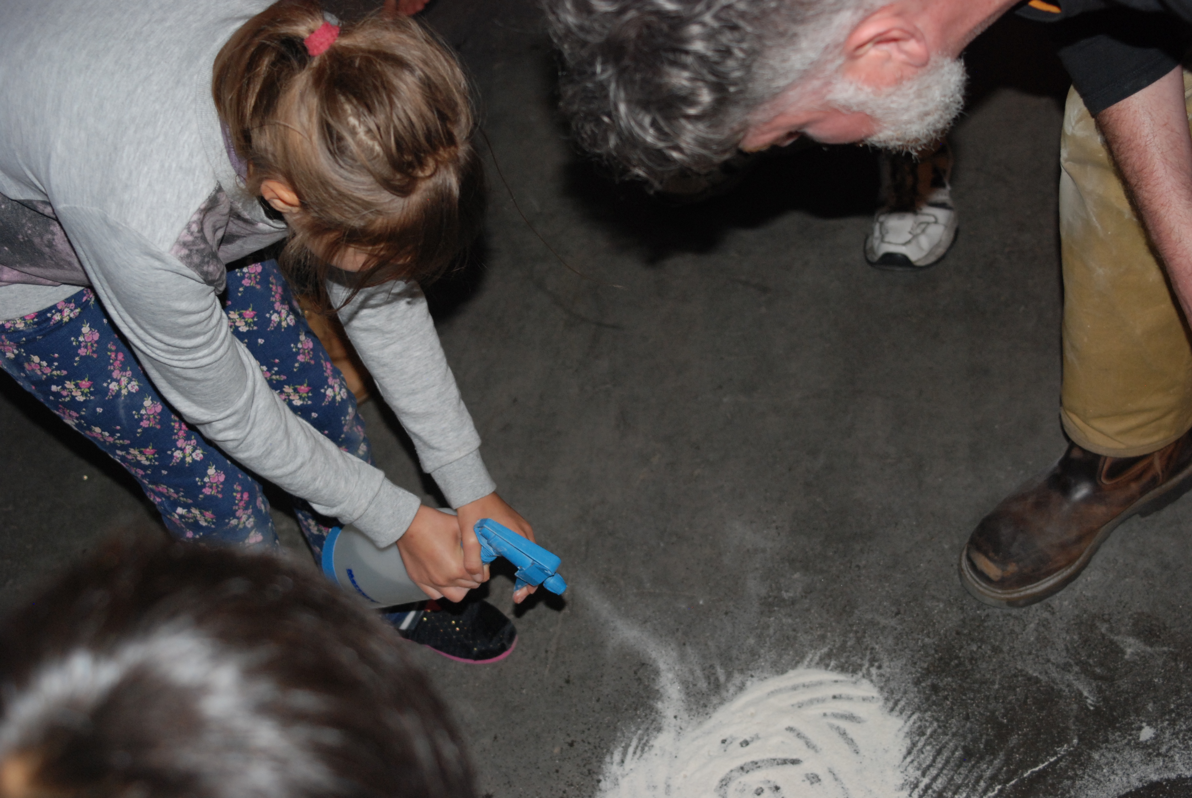 Even the kids got to take part in the action under the firm hand of flour painter, Tim Armstrong, who helped them make their own unique flour painted emblems on our gallery floor.