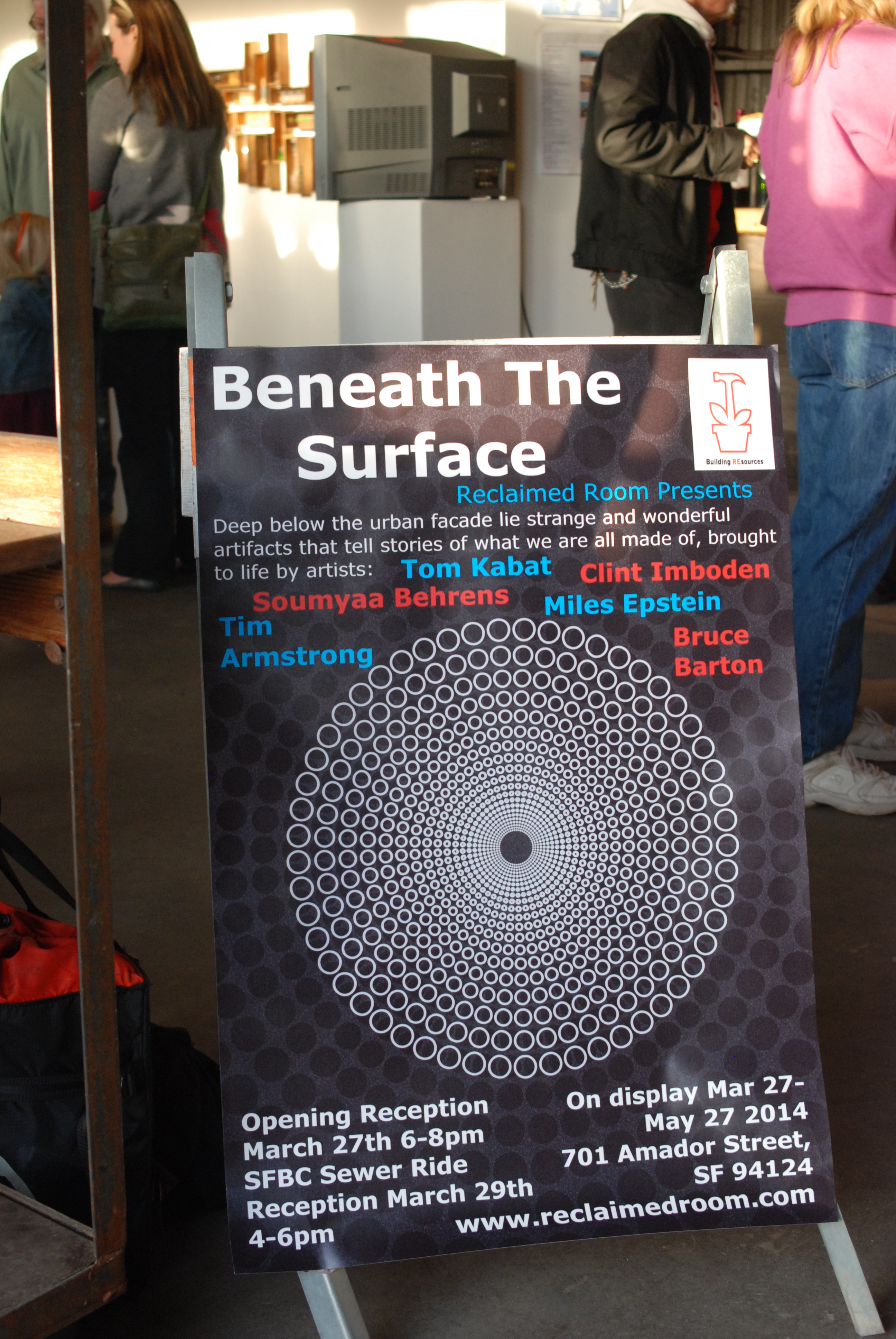 As part of this new display, we are sponsoring a special reception for the resurrected Sewer Ride by the San Francisco Bicycle Coalition! The Sewer ride takes place Saturday, March 29th, starting at the Daly City BART and winds 12 miles near San Bruno mountain, Candlestick and the SF Bay exploring the squishy boundary between humans and H20. It comes to a close at Reclaimed Room with a small party for the riders and anyone else who wants to join. The riders should arrive between 3 and 4pm and the party officially goes from 4-6pm. Beers and snacks provided! Join US!! Sign up for the ride here:
